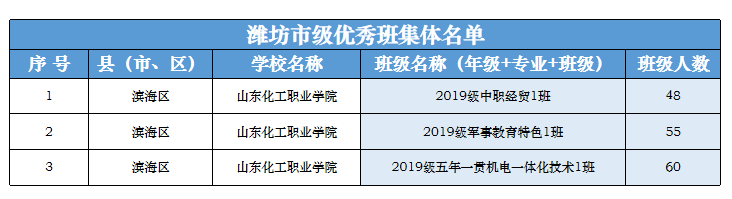 潍坊市市2020学年中等职业学校优秀班集体名单