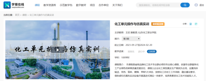 3. 《化工单元操作》课程被认定为2023年山东省继续教育数字化共享课程