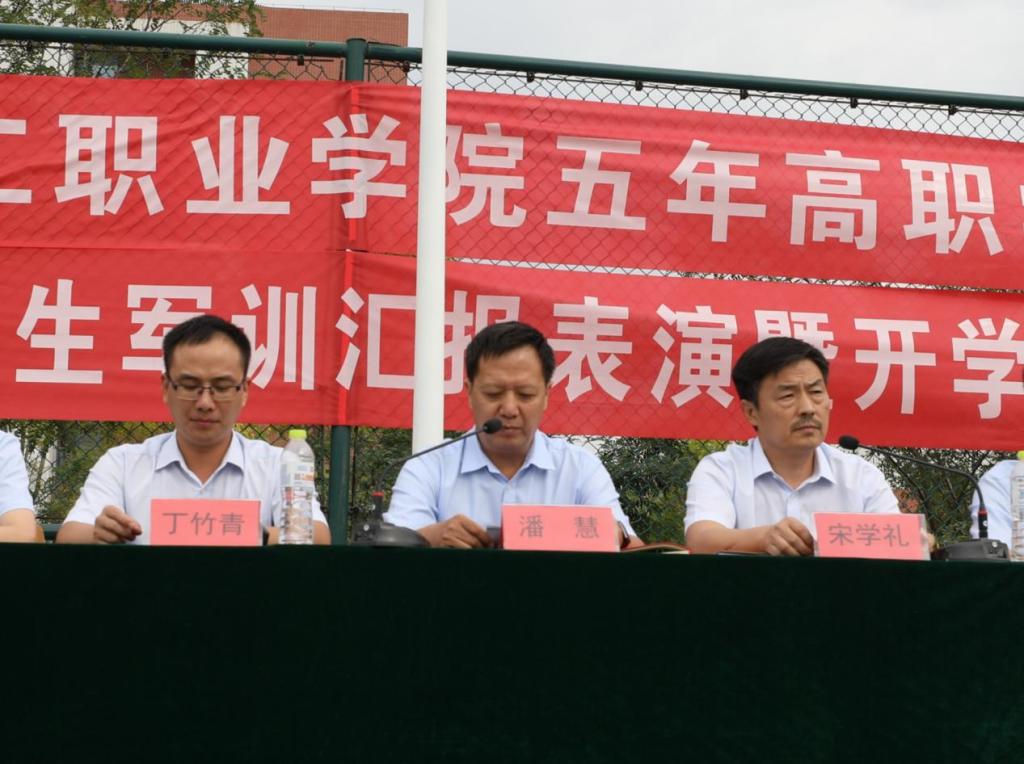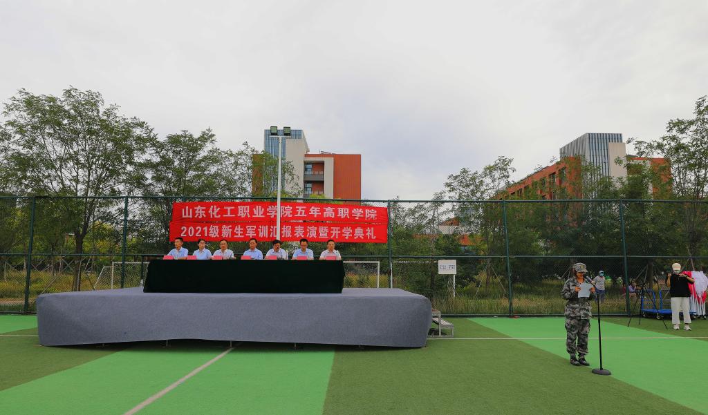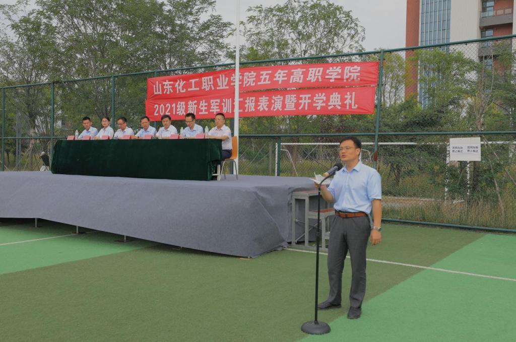金秋送爽,意气轩昂。9月24日下午,五年高职学院2021级新生军训汇报表演暨开学典礼在学校足球场隆重举行。2021级新生们以昂扬向上的精神面貌接受检阅,宣告着为期半个月的军训生活正式收官。山东化工职业学院党委副书记潘慧、教务科研处副处长丁竹青、学生工作处副处长陈恒亮和五年高职学院领导班子以及2020级、2021级全体师生参加大会。大会由五年高职学院党支部书记、院长宋学礼主持。