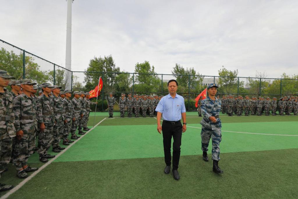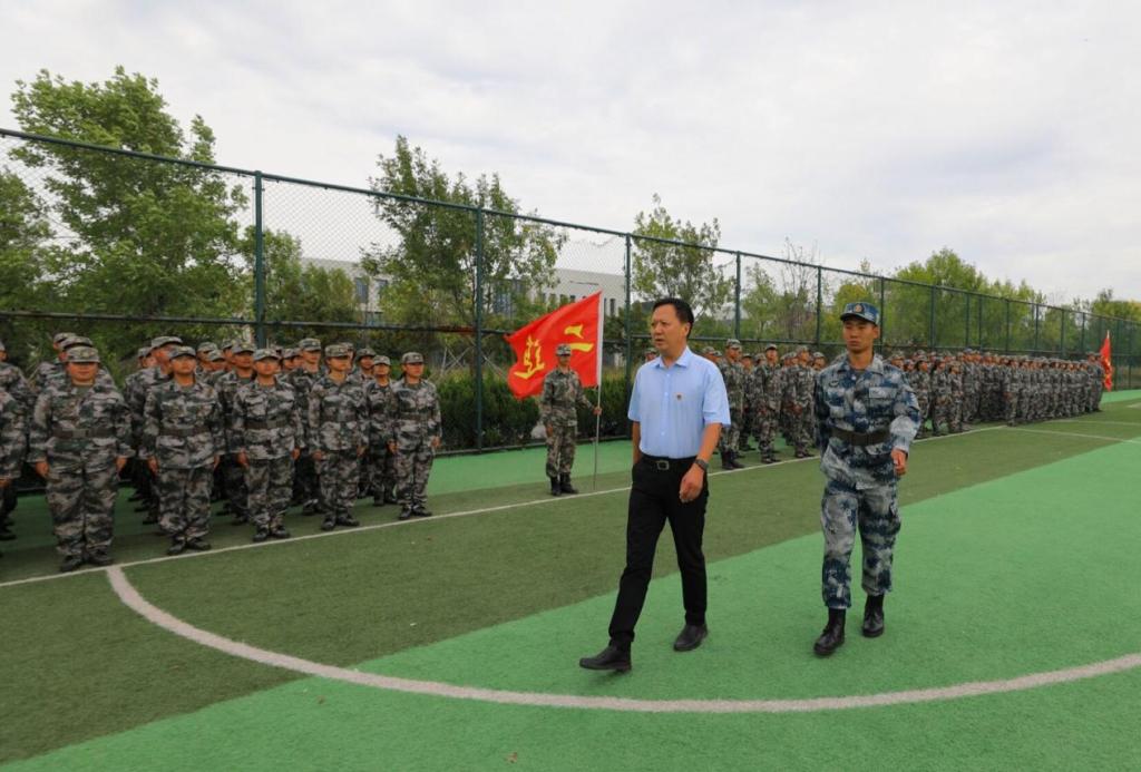 沙场秋点兵,青春正飞扬。军训总指挥刘鑫雨向领导同志进行汇演汇报,检阅方阵仪式正式开始。在雄壮昂扬的《检阅进行曲》中,山东化工职业学院党委副书记潘慧检阅了2021级新生军训团。