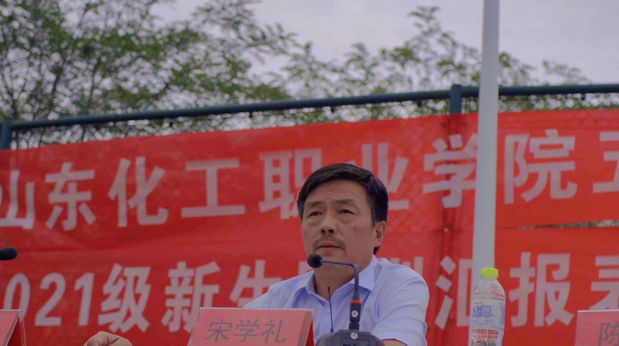 山东化工职业学院党委副书记潘慧讲话。潘书记首先对同学们选择加入山东化工职业学院大家庭表示热烈的欢迎,向在军训过程中付出辛劳和汗水的教官们表示衷心的感谢。艰苦的军训就要结束,紧张的学习生活即将开始,在此潘书记给新同学们提出四点希望: