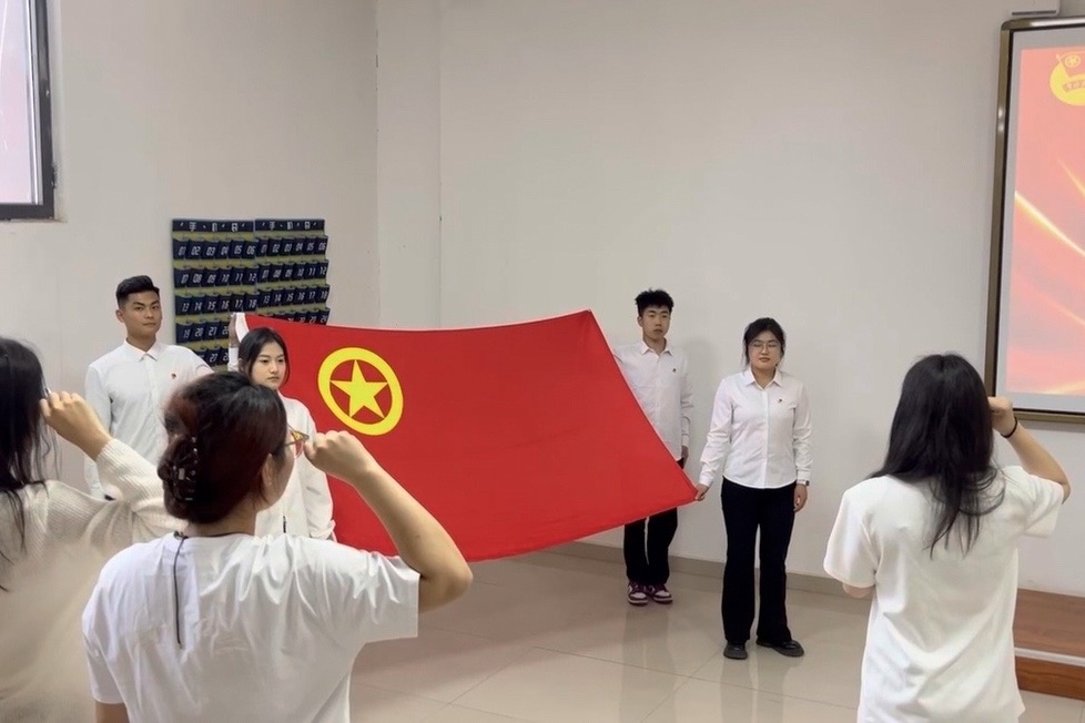 新团员们身姿挺拔,面向团旗,