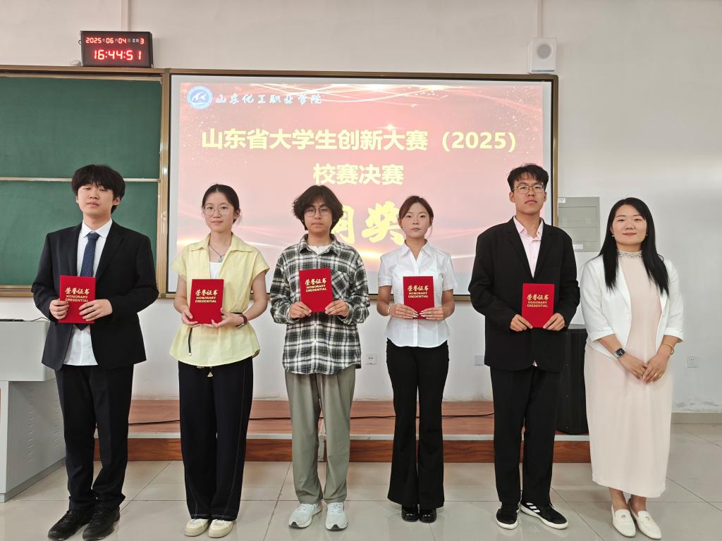 近日,学校在主校区阶梯2教室举行山东省大学生创新大赛(2025)校赛决赛,本次比赛由学生工作处主办,化学工程学院承办。教务科研处副处长郑艳玲、学生工作处副处长朱怀红、培训处干事常立荣担任本次比赛评委,参赛项目团队成员及指导老师,各二级学院创新创业分管领导以及学生代表参加。
