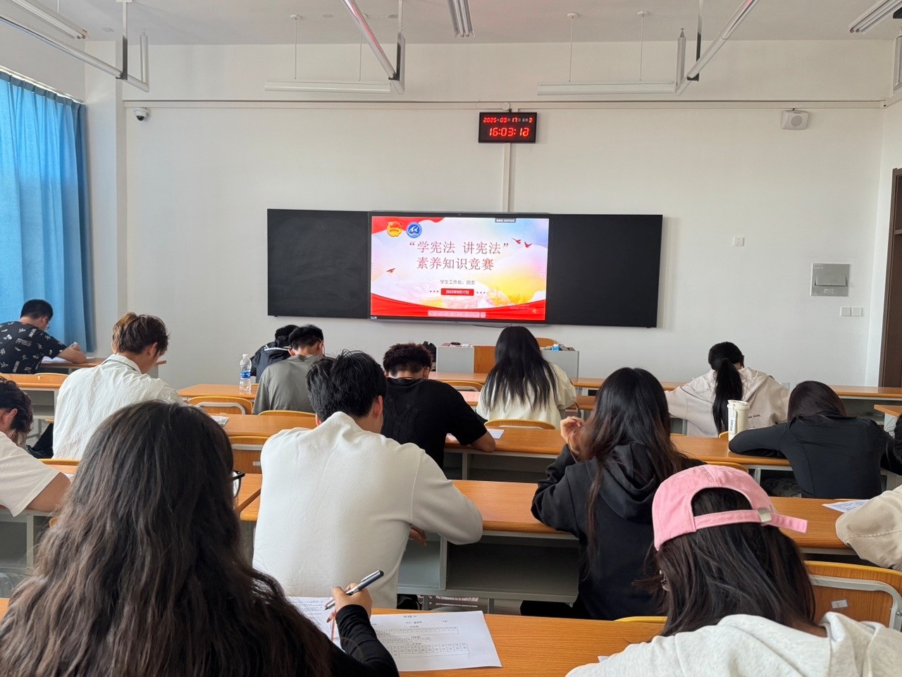 9月17日,学生工作处、团委主办的“学宪法讲宪法” 主题演讲比赛暨法治素养知识竞赛校级决赛,在学校主校区举行,近200名师生参与。经各教学部门选拔、校级初赛,5名学生晋级演讲决赛,25名学生跻身法治素养知识竞赛决赛。