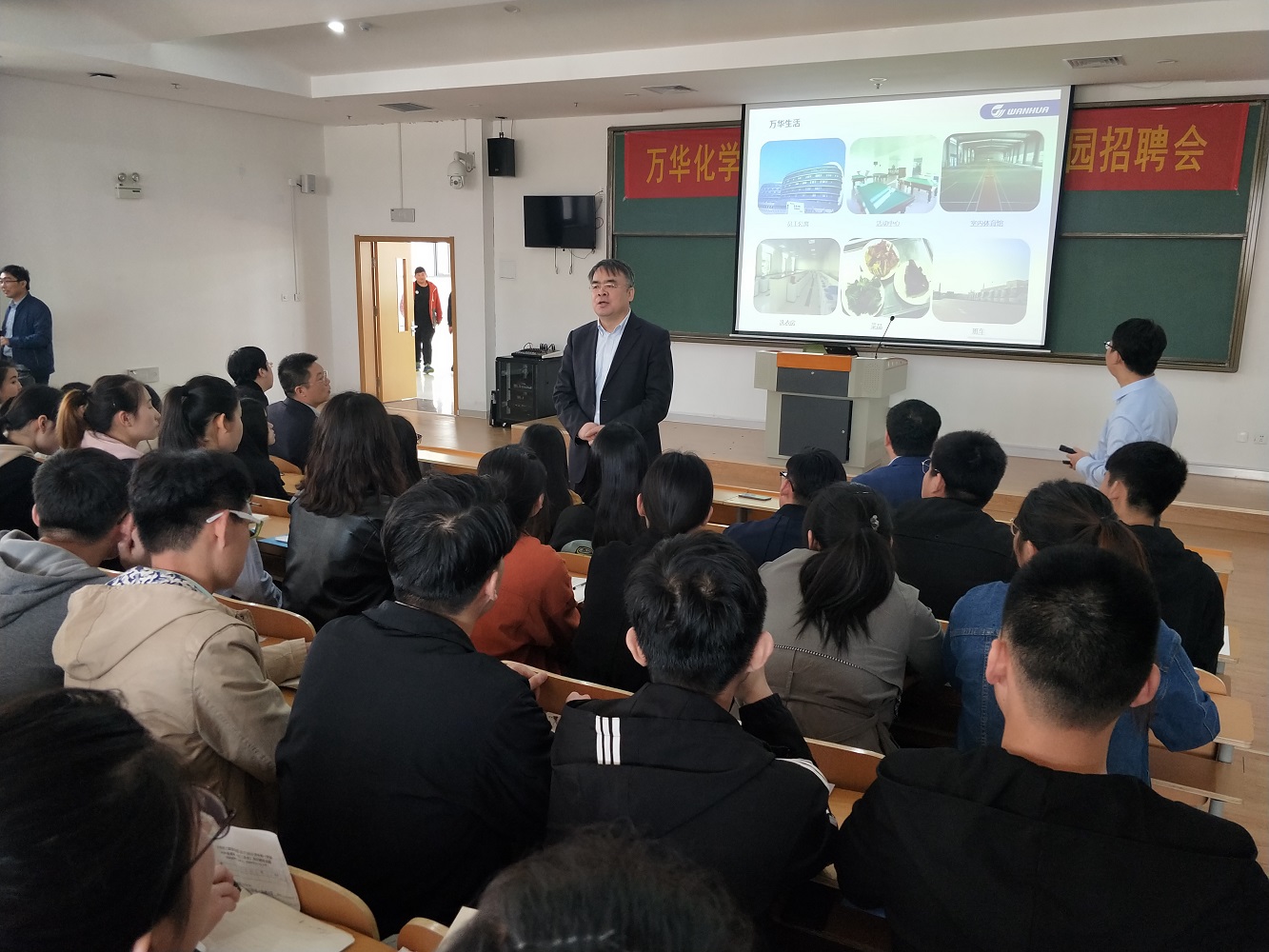 招聘宣讲会上,万华化学人力资源招聘经理介绍了公司的发展历史、企业文化、员工的工资和福利待遇、工作岗位、培养成长体系等情况。对于学生关注的个人培训成长体系,万华化学招聘经理作了特别介绍,万华化学始终将人才作为公司的第一核心战略资源来培养,实行有万华特色的“双导师制”,为每位员工提供职业与专业双导师。职业导师与员工没有业务关系,帮助员工进行职业规划;专业导师是同岗位上的前辈,帮助员工尽快熟悉工作。万华还为员工提供通用课程、岗位技能课程和管理与领导力课程,方便员工在工作之余进行“自我充电”,完善职业技能,不断发掘自身潜能。此外,定期的“高管咖啡时间”活动为普通员工和企业高管提供面对面的交流机会,高管了解员工工作和学习上的需求,并据此进一步完善人才发展机制。到场的学生被万华的发展理念、人才机制、薪资待遇、工作环境等深深吸引,表现出极大的兴趣。万华化学人力资源总监赵继德还与学生进行了现场交流,回答了学生们关注的几个问题,欢迎山东化工职业学院学子加入万华化学,实现企业和个人的共同发展。宣讲结束后,万华化学对学生以笔试的形式进行了专业素养和心理测试。