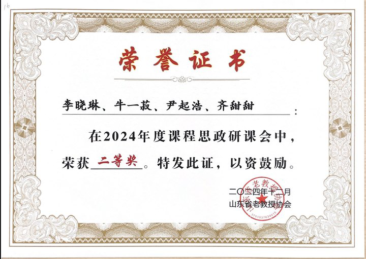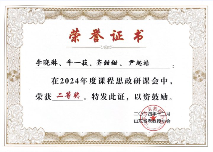 我校教师李晓琳主持、牛一菽、尹起浩、齐甜甜参与的《信息技术》和《人工智能导论》两门课程在由山东省老教授协会主办的山东省2024年“课程思政研课会”比赛中表现出色,分别荣获二等奖。