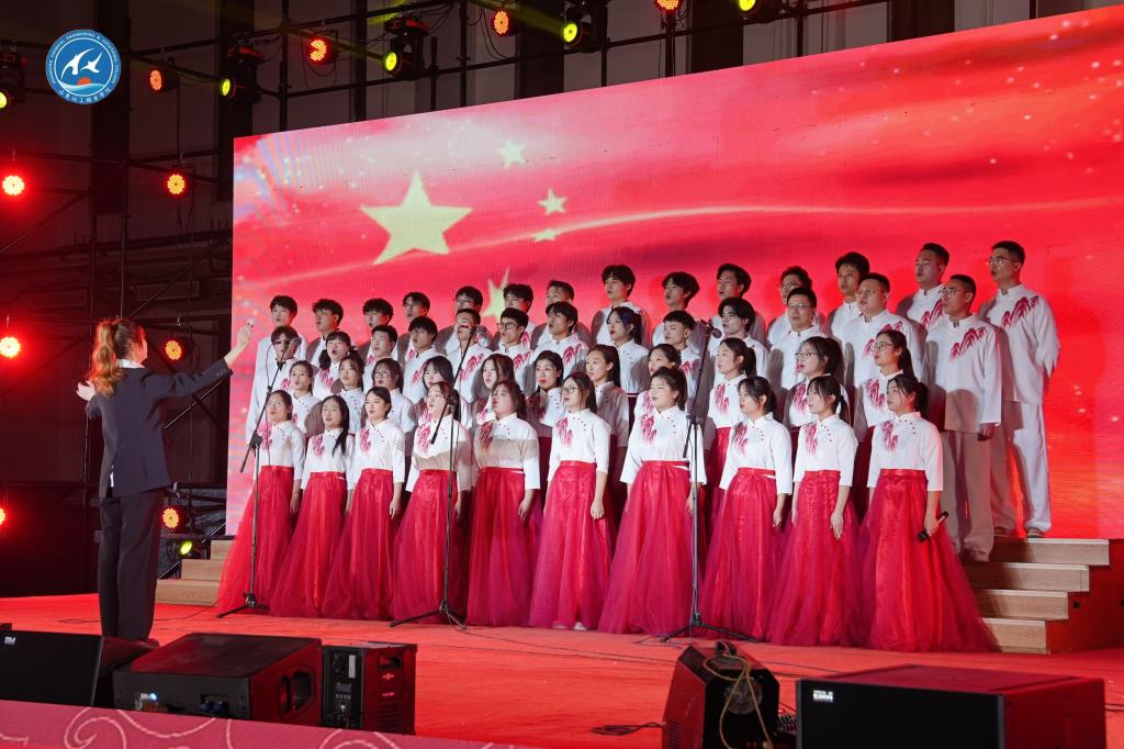 闪烁的霓虹灯交相辉映,编织出梦幻的光影。舞台上,演员们身着盛装、妆容明艳,台下,观众们欢歌笑语、热闹非凡。晚会节目丰富多彩、融汇古今中外,《鼓韵龙腾》赞美了自由坦诚的生命状态,《九州同》让民族团结精神烨烨生辉,《我们青年一代》彰显青年学子的爱国主义精神,《日不落》和《麒麟》描绘当代大学生的青春活力,《辅导员阵线联盟》《真假老师》展现浓浓的师生情谊,传统武术《刀舞乾坤》令人叫绝......精彩纷呈的节目赢得阵阵掌声,将晚会推向高潮。