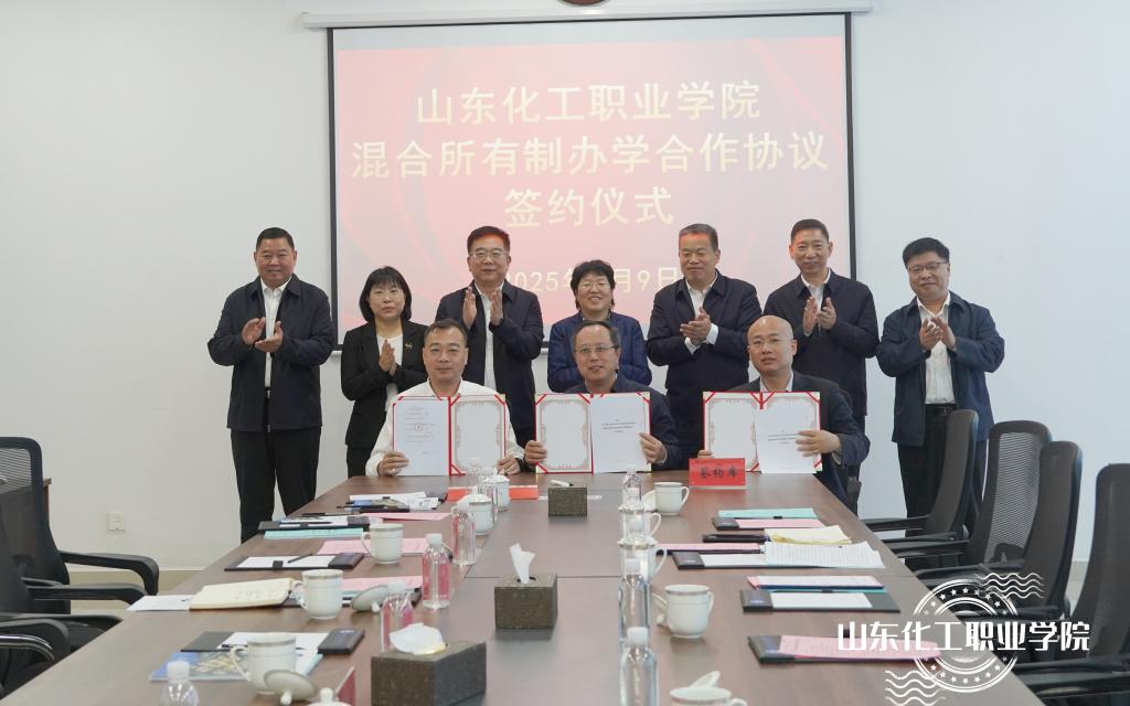 会上,在陈端梅、刘志国等领导的见证下,滨海区党工委副书记、管委会副主任张振城,鲁控教育党委副书记、总经理隋沂,潍坊市产发集团党委副书记、总经理李雪衍三人共同签订了新的山东化工职业学院混合所有制办学合作协议。