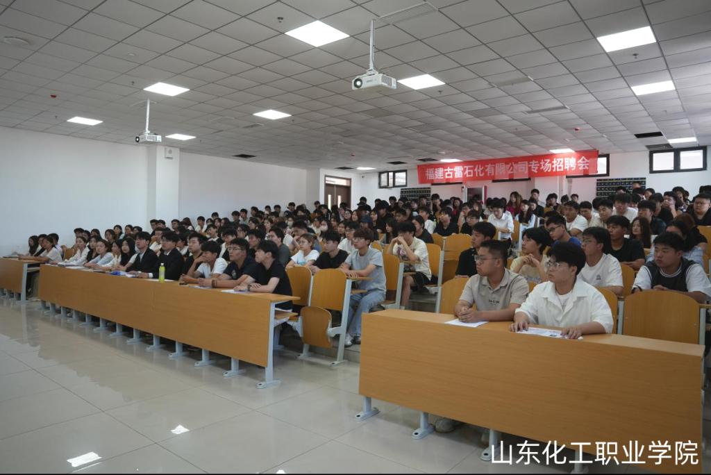 在福建古雷石化宣讲会现场,应冠羣介绍了古雷石化基本情况,针对同学们关注的职业发展与生活保障,就公司执行行业领先的薪酬体系、通勤班车、生活设施、文化活动等进行了解答,与同学们进行了互动交流。