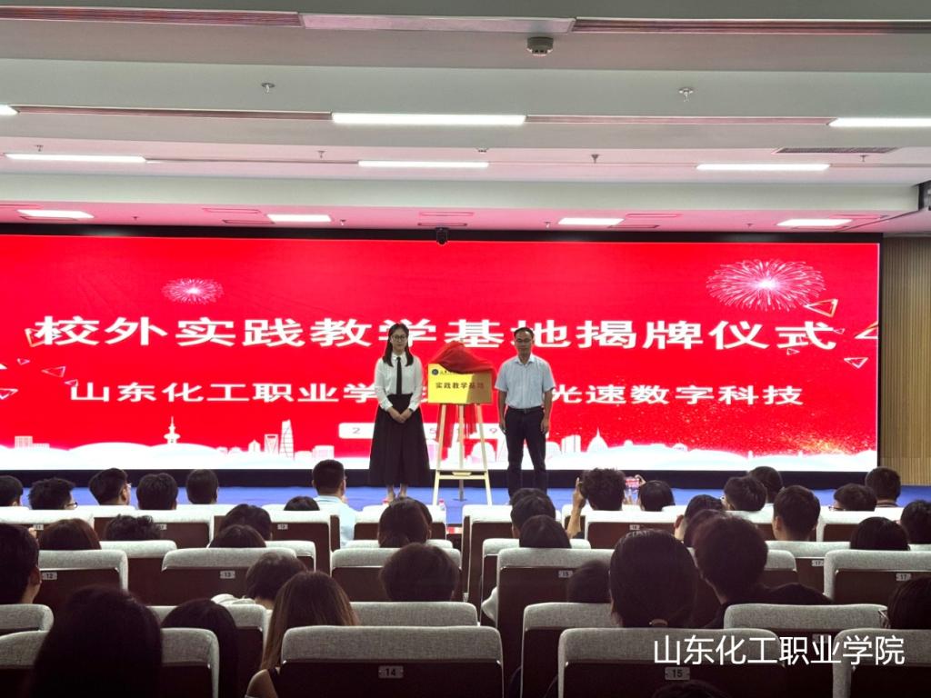 9月2日,我校与山东光速数字科技有限公司校企共建校外实践教学基地揭牌仪式暨数字媒体专业实践教学开班仪式在基地报告厅隆重举行。山东光速数字科技董事长鞠靖、学校校长助理丁竹青等校企双方相关负责人出席仪式。
