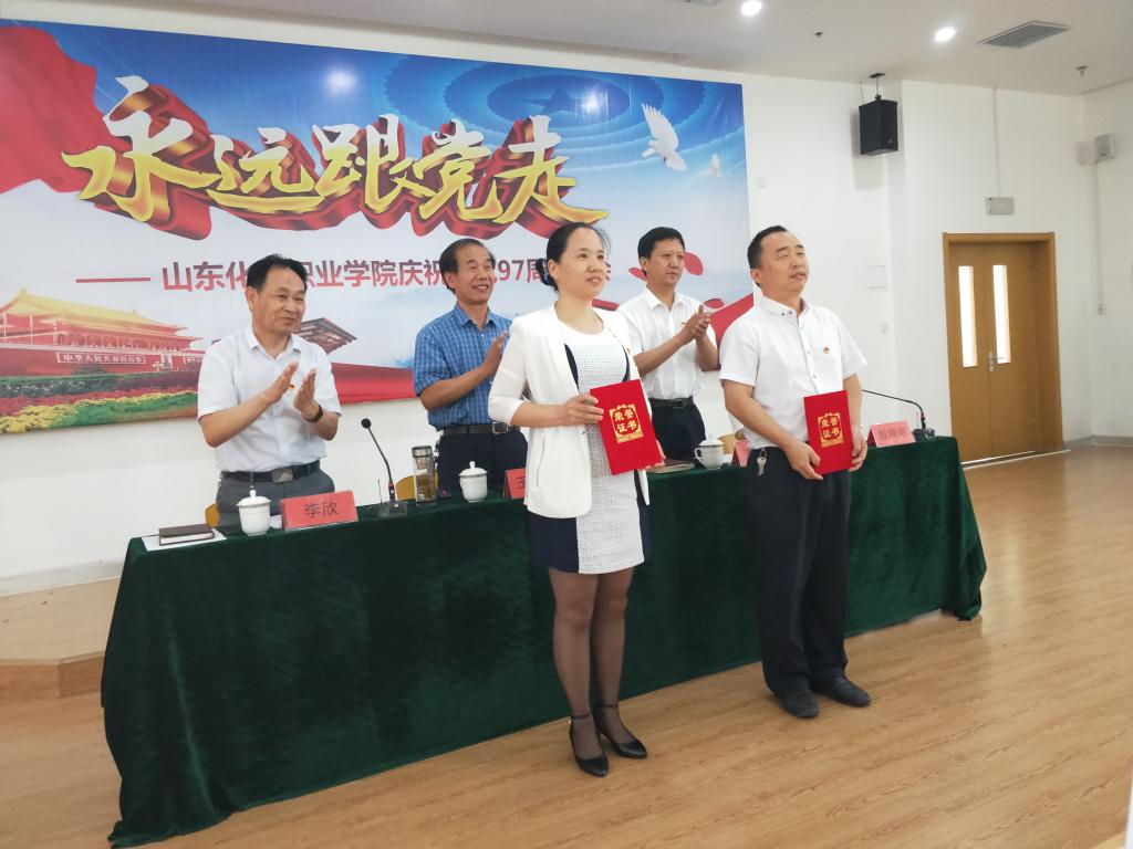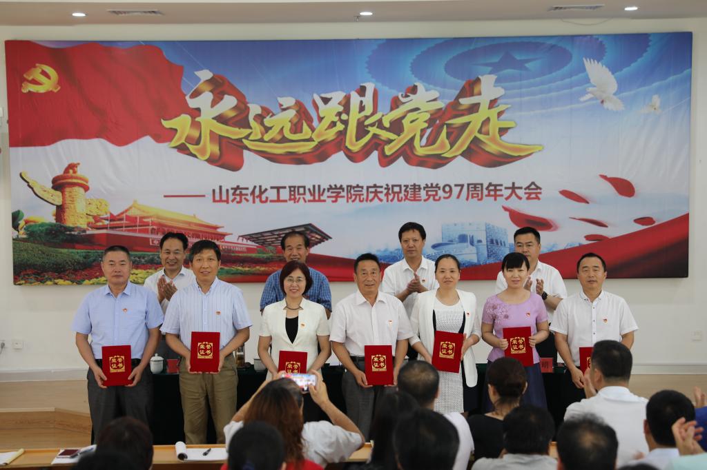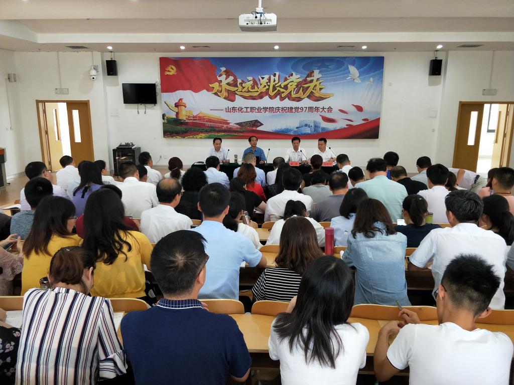为铭记党的光辉历史,歌颂党的光辉业绩,充分发挥先进典型的示范作用,凝心聚力共谋改革创新发展,6月27日下午,山东化工职业学院在2号多媒体报告厅隆重举行庆祝中国共产党成立97周年大会暨专题党课。学院领导王敬良、李欣、潘慧、耿晓明,全体党员和教职工参加。大会表彰了先进党支部、优秀共产党员和优秀党务工作者,王敬良院长作了专题党课报告。大会由党委副书记潘慧主持。