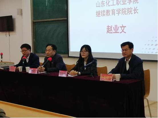 2018年11月5日上午9时,弘润石化第四期技能培训暨2018技能培训项目结业仪式在我院第七多阶梯教室举行。山东化工职业学院常务副院长李欣,弘润石化有限公司人力资源部领导刘笑菡,继续教育学院院长赵业文、副院长于立忠出席了会议。