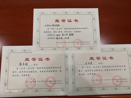 学院对此次大赛高度重视,虽然从接到通知到参赛仅有1月时间,但学院认真备赛,组织学生进行培训学习。之后,又在校内进行选拔赛和预赛。经过层层筛选,最终精选出田双、郑士浩、李爱萍三位学生作为参赛选手,由化学工程系吕宜春、路克鹏、王玉君三位老师带队参赛,这也是学院初次参加这项赛事。虽然初次参赛,学习时间又短,但学院的参赛队员们临场不惧、从容应对,最终拿下二等奖的骄人成绩。