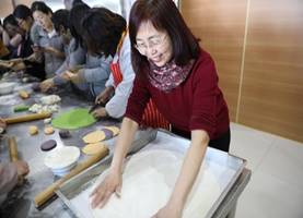和面、揉面、切面、捏面,大家各司其职,有质有序。教书育人的老师们原来在厨艺上也是行家里手,一个个面团在心灵手巧的老师们手下变的乖巧无比,有的面团被搓成条,有的被揉成块,再辅以材料的点缀,短短时间里,一个面品就做成功了。大家发挥自己的奇思妙想,形态各异,有做成小动物的,有做成花卷的,有做成元宝的……,颜色也色彩不一,红、粉、绿、黄等颜色纷纷登场,炫耀着自己的身姿,展示着主人的手艺。