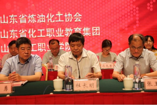 山东省炼油化工协会综合管理部主任杜勇在致辞中说,山东化工职业学院牵头组建成立山东省化工职业教育集团,符合《教育部关于深入推进职业教育集团化办学的意见》《国务院关于印发国家职业教育改革实施方案的通知》《国务院办公厅关于石化产业调结构促转型增效益的指导意见》《山东省新旧动能转换重大工程实施规划》等文件精神,有利于山东省化工产业界校企合作、产教融合,有利于培养化工行业急需的高端技术技能人才,有利于山东省化工产业新旧动能转换重大工程的实施,对推进全省化工产业转型升级及化工职业教育改革与发展,具有重要的现实意义。山东省炼油化工协会将一如既往的支持和帮助山东省化工职教集团,从业务上、政策上鼓励化工职教集团开展社会化服务,为地方经济社会发展提供人才支持和技术支撑。希望山东化工职业学院积极发挥混合所有制办学体制机制优势,扎实做好集团组建及运行工作,服务成员单位发展,为新时代山东省化工产业的发展做出积极的贡献。