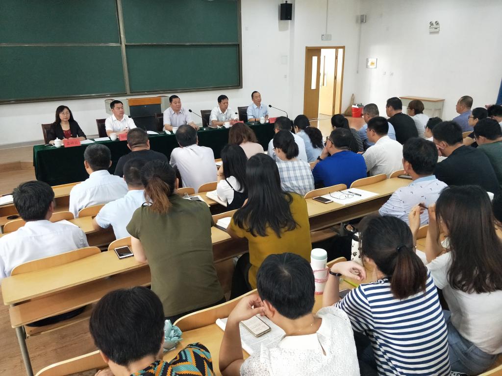 学院党委副书记潘慧部署了学院新学期主要工作:一是要全力以赴做好新生入学接待及军训、入学教育工作;二是要落实院系两级管理、以系为主的模式;三是要落实“切块”为主的绩效分配方式;四是要在抓好教学质量的基础上,大力推进课堂革命,落实高质量发展目标下教育教学改革;五是要认真总结、探索招生就业的新形式、新方法;六是要尽快完成写实考核机制;七是要完善规章制度,加强工作督导,落实精细化管理;八是机关部门要落实“放管服”改革,突出以教学为中心原则,提高服务意识;九是要落实安全稳定目标下的风险防控化解措施;十是要坚持思想引领,做好党建各项工作;十一是要落实上级要求,搞好迎接新中国成立70周年系列庆祝活动。