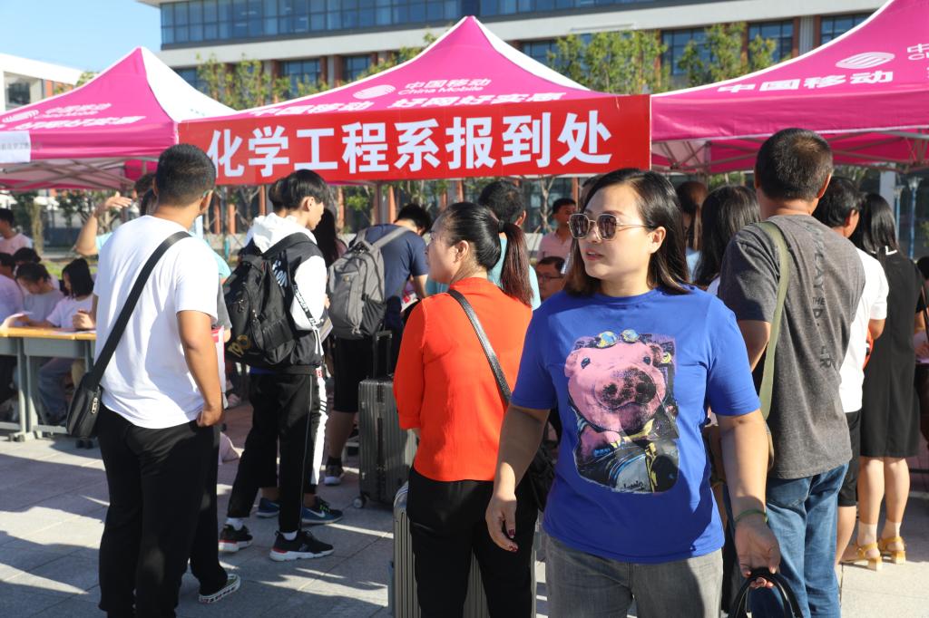 金秋送爽,丹桂飘香。8月31日,山东化工职业学院喜迎2019级新生入学报到。在蔚蓝的天空下,校园迎新现场人流如织,彩旗飘扬,来自省内外的莘莘学子在家人的陪伴下入学报到,满怀憧憬地追寻青春梦想,开启人生的美好篇章。