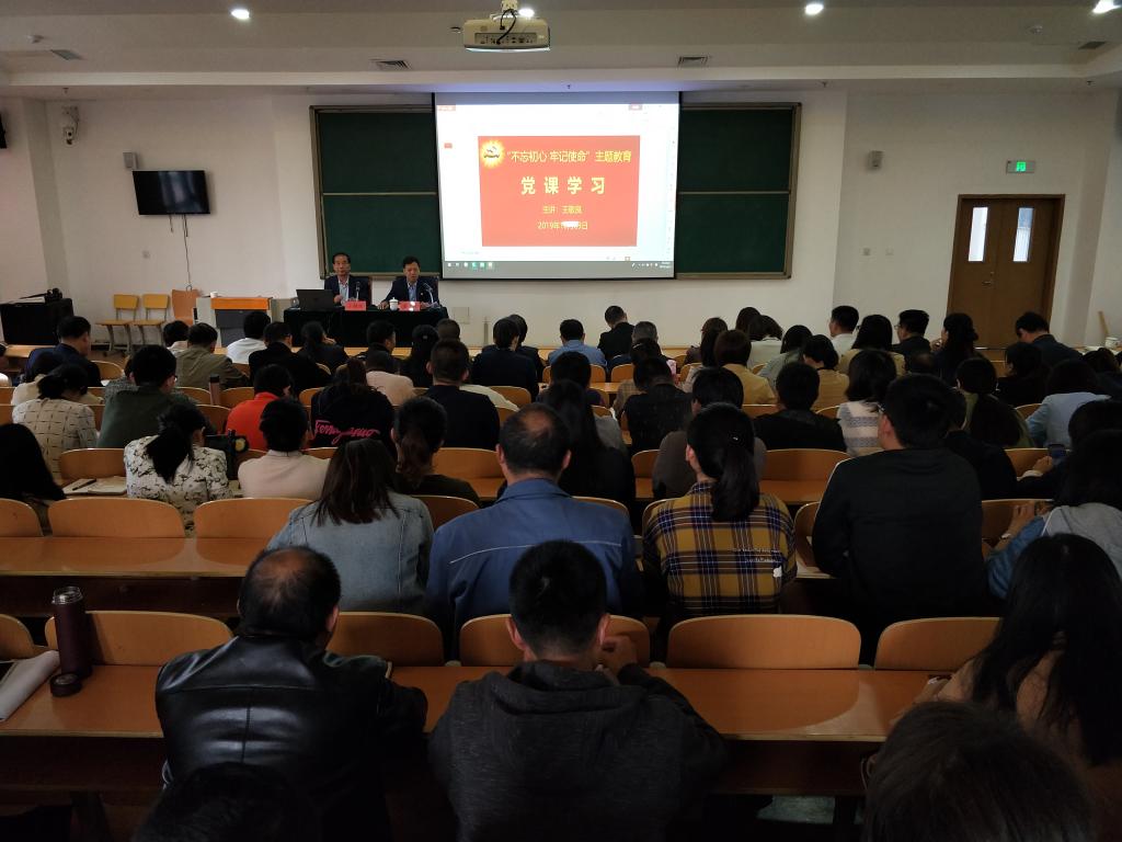 10月23日下午,山东化工职业学院在第八阶梯教室开展“不忘初心、牢记使命”专题党课学习。本次党课由学院院长王敬良主讲,党委副书记潘慧主持,全体中层干部、党员和入党积极分子参加了学习。
