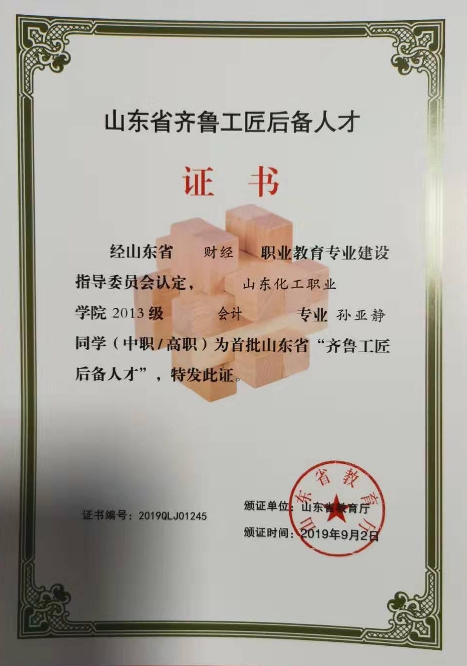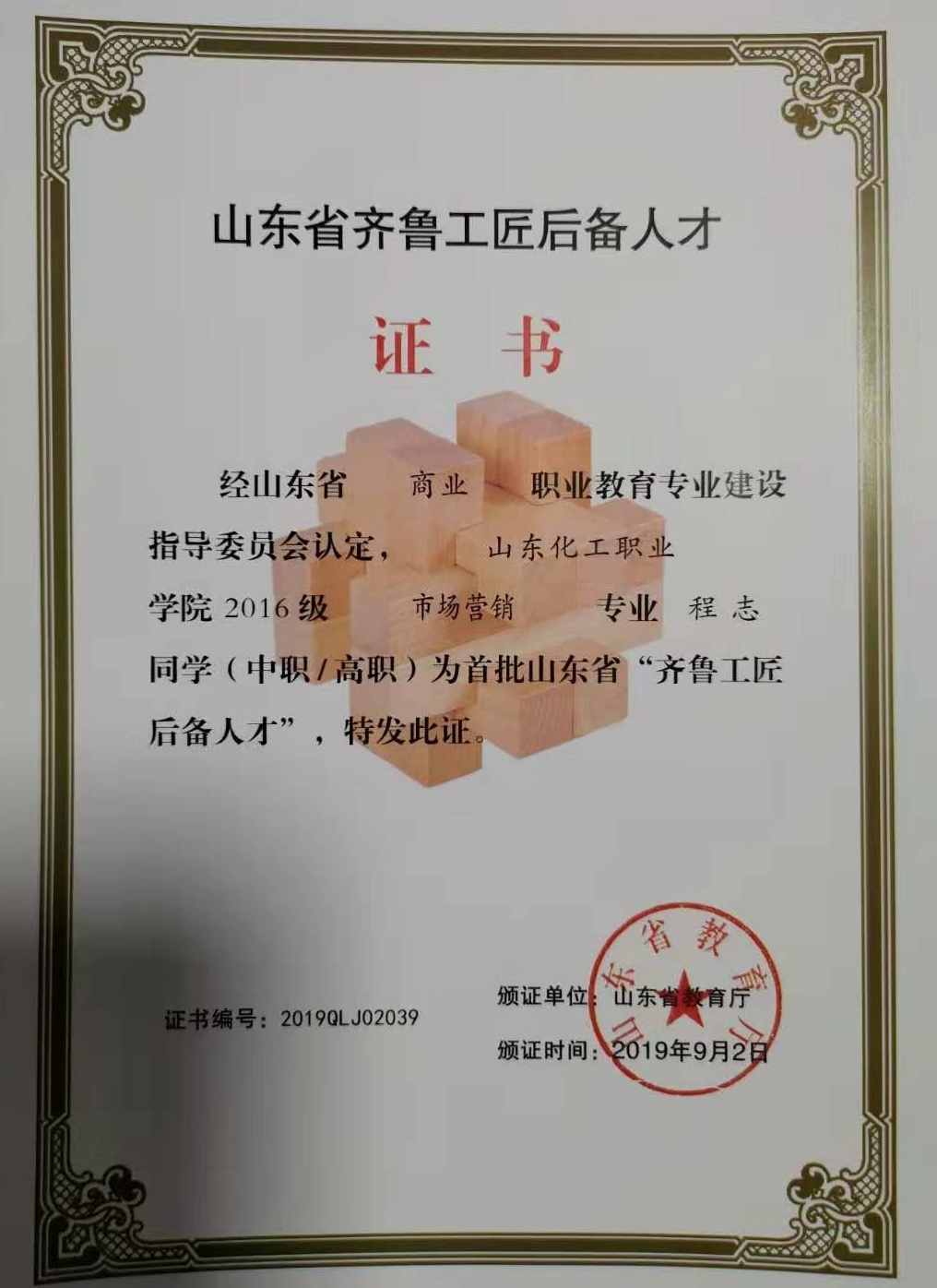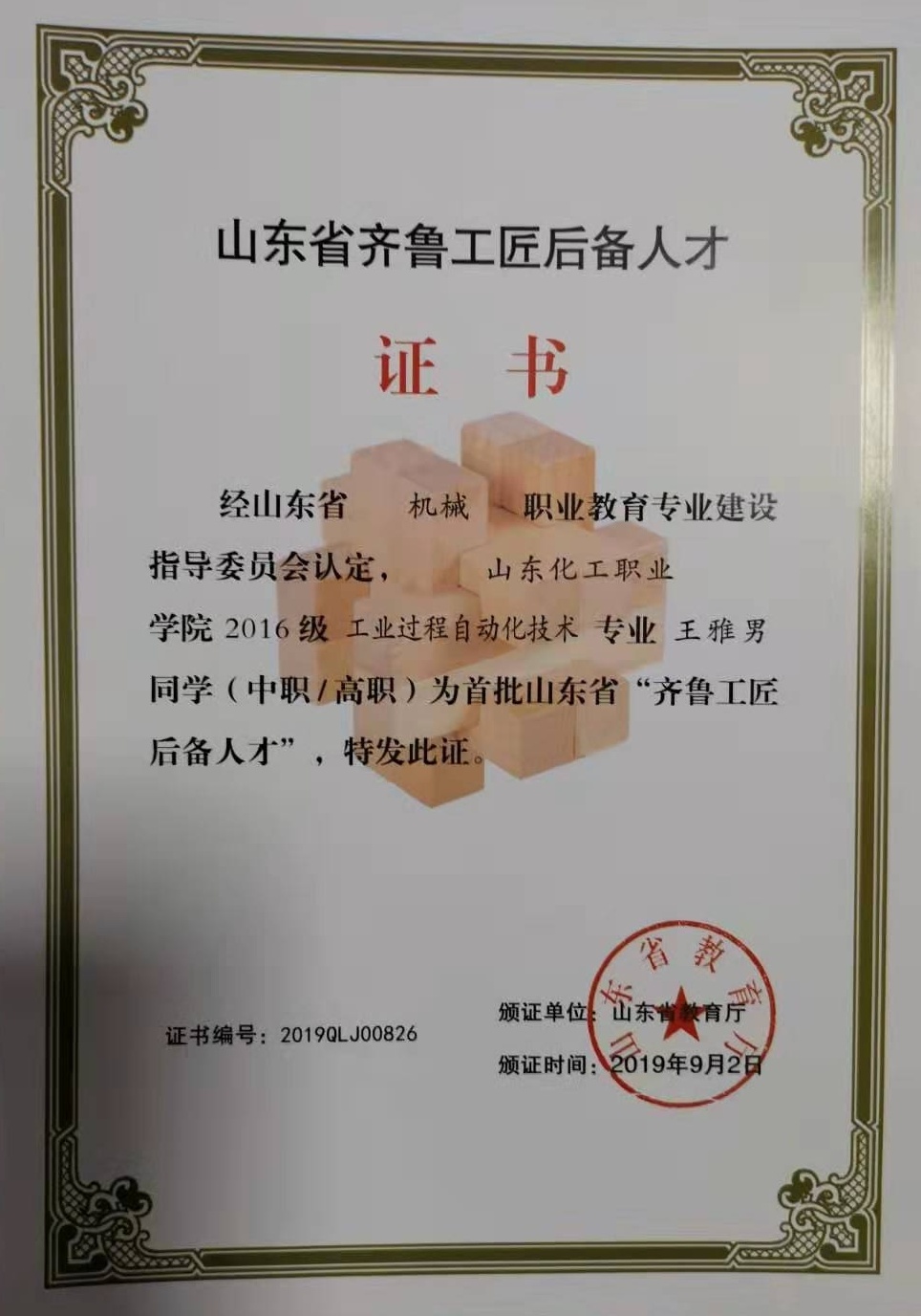日前,山东省教育厅公布了首批“齐鲁工匠后备人才”名单,山东化工职业学院2016级电气自动化技术专业的薛俊博,工业过程自动化技术专业的刘琛、任梦洁、王雅男,机电一体化技术专业的王彦山、王金强、贾玉婷,会计专业的孙亚静,市场营销专业的刘晓、程志等10名学生成为山东省“齐鲁工匠后备人才”。