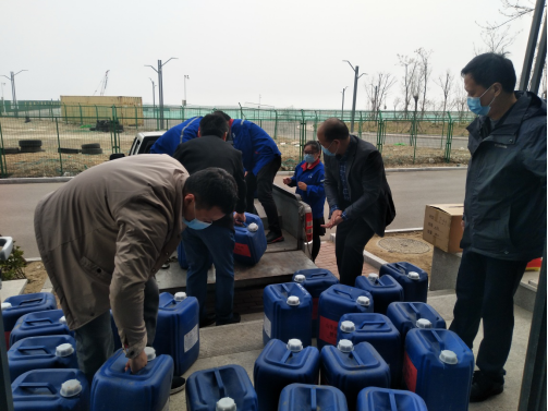 3月31 日,爱心企业山东博苑医药化学有限公司向我院捐赠次氯酸钠消毒液1000公斤、防护口罩1000个和一次性橡胶手套1400副等防疫物资。学院党委副书记潘慧代表学院接收了企业的捐赠。
