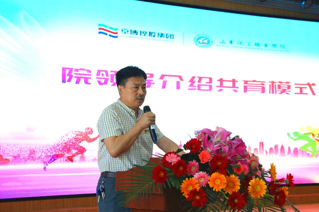 滨州市教育局副局长王学勇十分支持山东化工职业学院与京博控股集团开展的校企合作。他说,这是京博控股集团与山东化工职业学院在深化产教融合,助力新旧动能转换之路上迈出的重要一步,也是滨州市职业教育领域重视发挥企业主体作用,抓住立德树人这个根本,致力于实现“产业链-创新链-教育链-人才链”的“四链贯通”,将校企双方的教育优势、人才优势转化为创新优势、竞争优势的生动体现。希望双方坚持立德树人、以德为先,创新人才培养模式和教学模式,突出职业教育的类型特点,培养出一大批具有工匠精神、专业理论、岗位操作技能的实用型技术、技能人才,为打造全国一流、全省领先的职业教育发展“滨州样板”贡献力量。