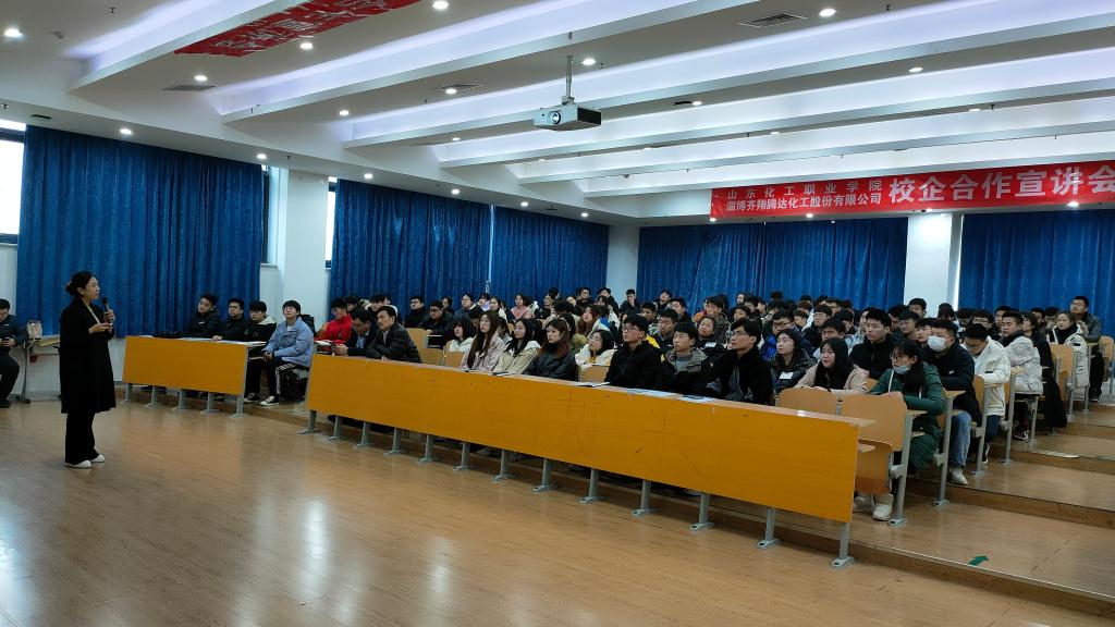 签约仪式结束后,淄博齐翔腾达股份有限公司在山东化工职业学院举行了校企合作订单班培养宣讲会,向2019级化工专业的学生宣讲淄博齐翔腾达股份有限公司的企业概况、生产经营、用人需求、员工薪酬福利和晋升发展空间,鼓励学生加入齐翔腾达团队,成就人生事业。齐翔腾达公司对有意向的学生进行了面试,在山东化工职业学院组建齐翔腾达订单班。