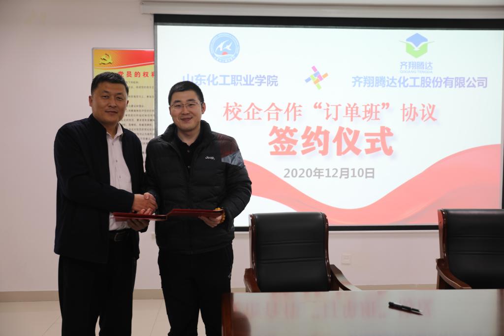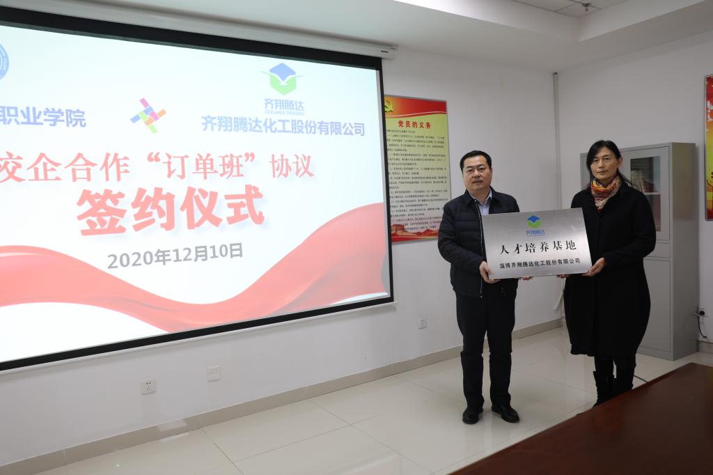 12月10日,山东化工职业学院职业学院与淄博齐翔腾达化工股份有限公司签订校企合作协议,举行人才培养基地、实习实训基地、校企合作订单班授牌仪式,开启产教融合、校企合作新的篇章。