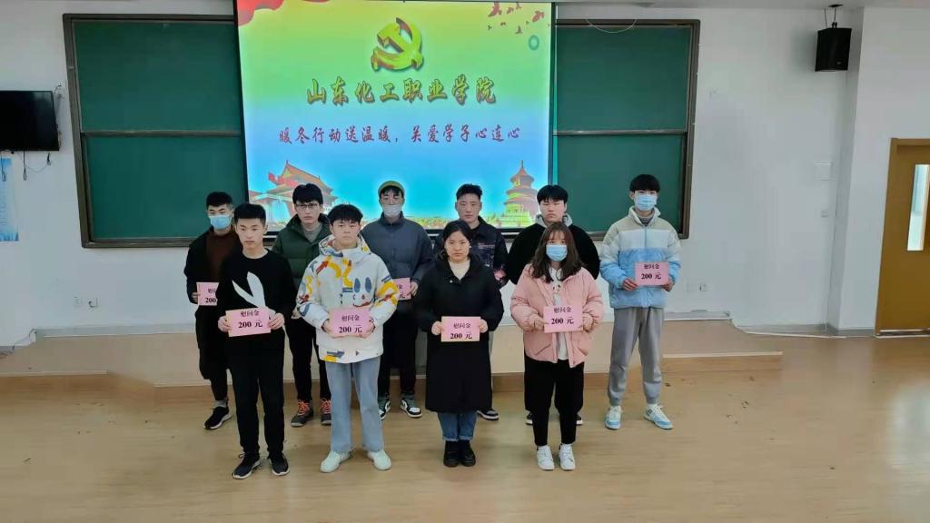 岁暮天寒,情暖人心,山东化工职业学院此次“暖冬行动”温暖了每一个寒窗学子,助力脱贫攻坚。胸怀千秋伟业,恰是百年风华,新年将至,山东化工职业学院全体师生祝愿祖国山河锦绣,国泰民安。祝愿祖国和顺致祥,幸福美满。