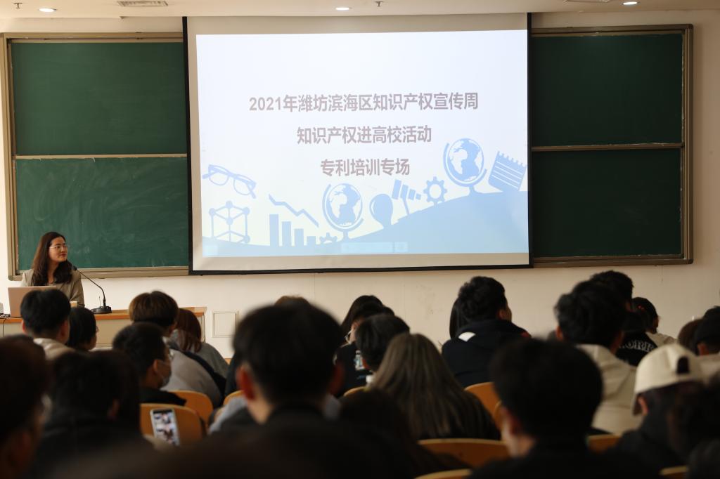 本次讲座邀请潍坊市滨海区综合行政执法局韩文静主任担任主讲人。讲座上,韩文静运用生动、详实的实例,深入浅出地介绍了专利的基础知识,包括专利的产生与发展,中国的专利制度,专利的定义和分类等,深刻分析了知识产权的重要性,让师生们认识到,知识经济全球化背景下,知识产权在国家发展和国际竞争中的重要作用。