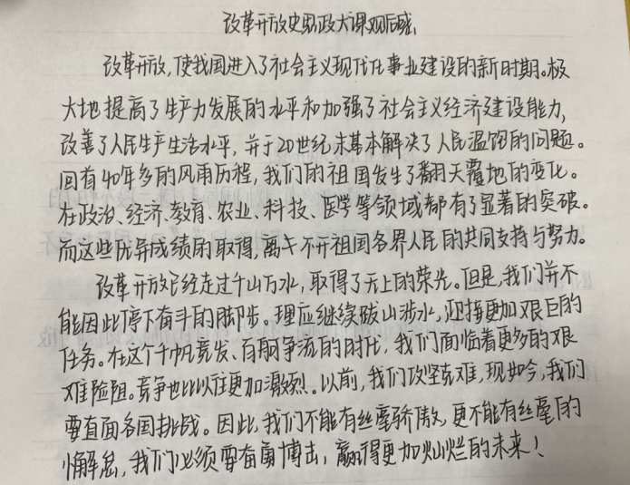 通过此次思政大课的学习,学院全体学生对党史、新中国史、改革开放史、社会主义发展史有了更深的认识和了解,也让同学们正确地把握历史规律,清醒地认识中国国情,以此增强道路自信、理论自信、制度自信、文化自信。以新的姿态为祖国的建设增添一份力,为祖国的发展贡献自己的力量!