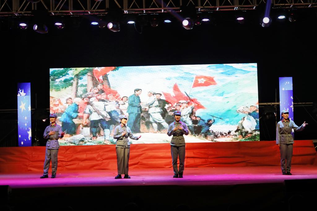 本次文艺汇演共分为铭记-峥嵘岁月、传承-薪火熊熊、图强-筑梦圆梦三大篇章,在舞蹈《红旗颂》中拉开了序幕。歌曲《南湖的船 党的摇篮》追忆了1921年开天辟地的伟大壮举;诗朗诵《百年风华 千秋伟业》让我们铭记革命志士坚定的理想信念;诗朗诵《从鸢都到齐都—且歌且行一路芬芳》回顾了山化院一路成长一路改革的发展史,寄托了对学校的美好祝福;合唱《跟着共产党走》是老一辈教育者的誓言和信念,也是青年一代的传承……整场演出精彩纷呈,高潮迭起。由全校师生和学生合唱团共同唱响《共筑中国梦》和《我的祖国》将晚会推向顶峰,唱响了全校师生对学校新时代高质量发展的美好信心和祝愿。一首首红歌、一幕幕精彩的表演带领现场观众回顾党的百年沧桑,重温党的峥嵘岁月,传承星星之火,共同筑梦圆梦,谱写了新时代乐章,激励我们继续扬帆远航。
