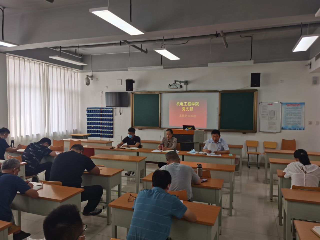 积极主动 ,教学生活放光彩。在教学过程中除了完成教学任务之余,教研部每一位成员积极参加校内的活动。“入党为了什么,为党做了什么”演讲比赛,我教研部成员荣获机电工程学院二等奖;庆祝建党100周年晚会筹备过程中,我部人员踊跃报名,2人参与诗歌朗诵,1人参与了大合唱;积极参与党课培训,加强党史学习,提高党性觉悟。在繁忙的工作之余,充分利用好每一次机会,劳与逸做到完美结合,让教学生活丰富多彩。