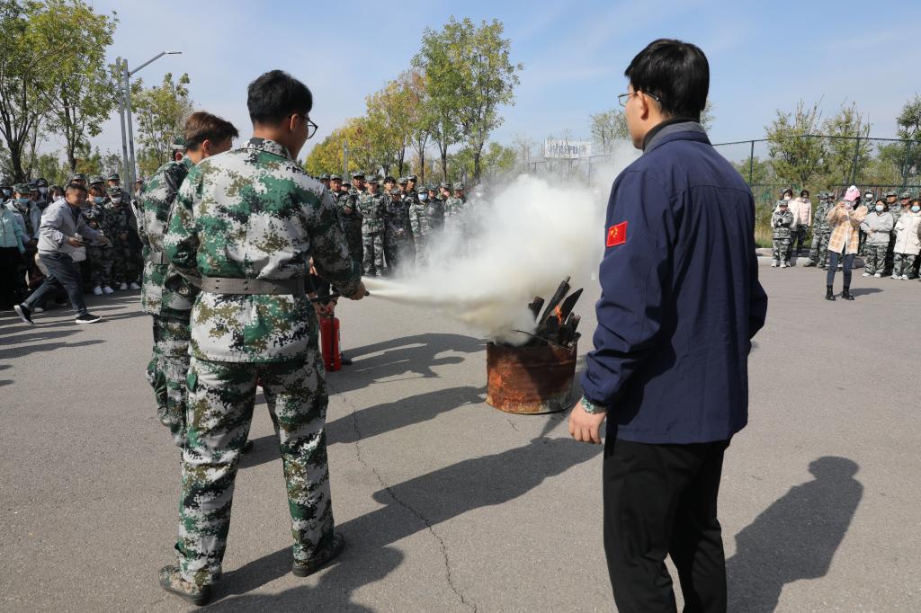 培训中,杨康教官向老师和学生们讲解了消防安全的重要性、威胁校园消防安全的火灾隐患及重点防控部位等。杨教官用诸多的火灾案例来剖析和解读火灾隐患,并对火灾发生时应如何应对、如何紧急自救和逃生等知识进行了普及。同时,杨教官亲自演示讲解灭火器的操作方法和注意事项。培训过后,杨教官在校园内进行了灭火演练的演示,并指导学生操作使用灭火器,帮助学生掌握正确灭火的方法。