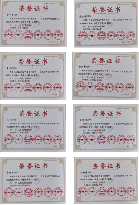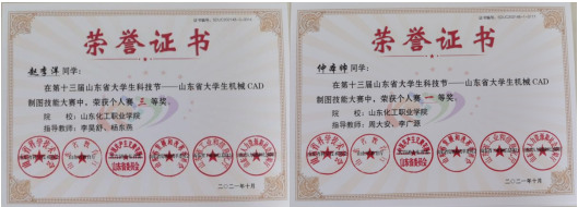 第十三届山东省大学生科技节-山东省大学生机械CAD制图技能大赛于9月25日如期举行,山东化工职业学院作为分赛场,圆满完成了比赛任务。经过激烈角逐,我院10名参赛选手(仲本帅、肖作洋、李伟、黄金剑、宋硕、骆正擎、赵李洋、张树坤、王方硕、安军臣),在周大安和李广源、刘凯等多位指导教师的指导下,在决赛中喜获佳绩,共取得个人赛一等奖一项,二等奖四项,三等奖五项。