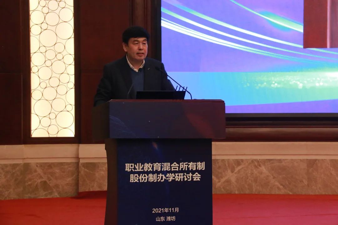 11月13日,由教育部职业教育与成人教育司主办,山东省教育厅承办,潍坊市教育局、山东海事职业学院、山东化工职业学院、山东交通职业学院协办的“职业院校混合所有制、股份制办学研讨会”在潍坊市召开。教育部职业教育与成人教育司副司长林宇视频连线参加并致辞,省教育厅总督学邢顺峰、潍坊市副市长李平分别致辞。