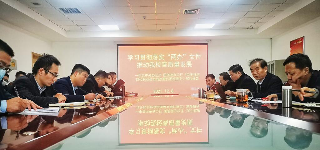 党委书记孔祥奴说,王校长立足我校办学实际和“十四五”的发展规划,将《意见》与我校实际相结合,只有思想大解放,才能带来大发展,为各单位部门“我们怎么办?我们如何办?”指明了方向和目标,希望各单位部门认真宣贯会议精神,认真思考和落实会议精神和指示,充分发挥干部带头作用,创造我校职业教育实现跨越式发展。