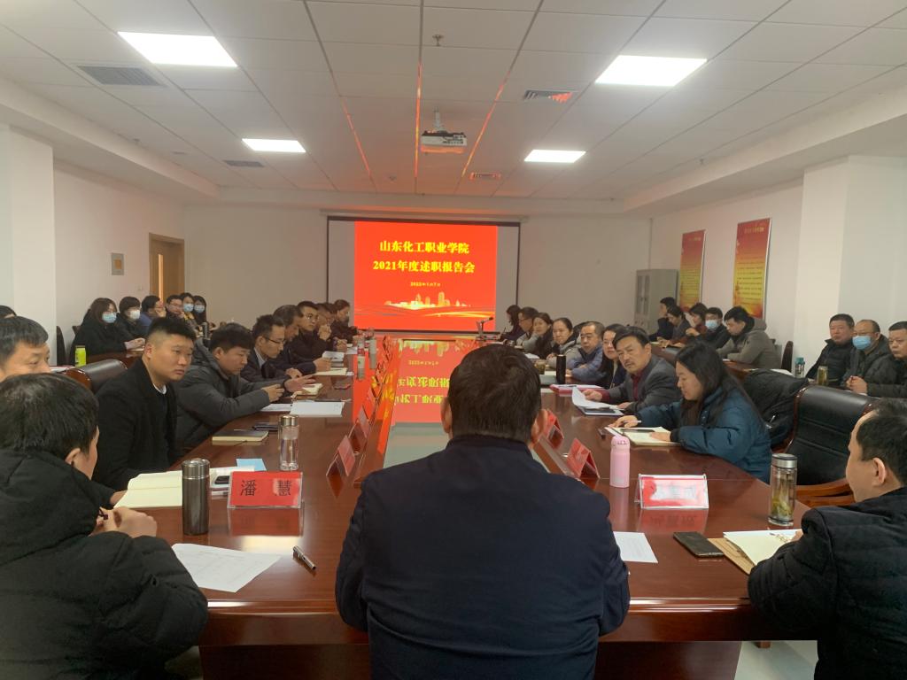 2022年1月7日,山东化工职业学院2021年度述职报告会在2207会议室召开。会议由党委书记孔祥奴主持,党委副书记潘慧、副校长冯喜成、全体中层干部及教职工代表参加了此次会议。本次述职大会,旨在对2021年度各部门工作进行全面盘点及反思,对工作进行更好地布局谋篇,同时也为各单位管理人员提供一个展示自己、相互学习的平台。