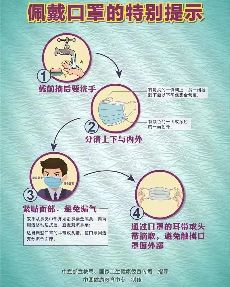 戴口罩仍然是阻断病毒传播的有效方式,对于新冠病毒及其变异株传染同样适用,即使已经完成全程疫苗接种的情况下,科学规范佩戴口罩至关重要。居家可以不戴口罩,外出则需要正确佩戴口罩(完全遮住口鼻紧贴皮肤)。手不可触摸口罩外面,避免交叉感染。戴口罩应遵循四个步骤(看、戴、调、压)