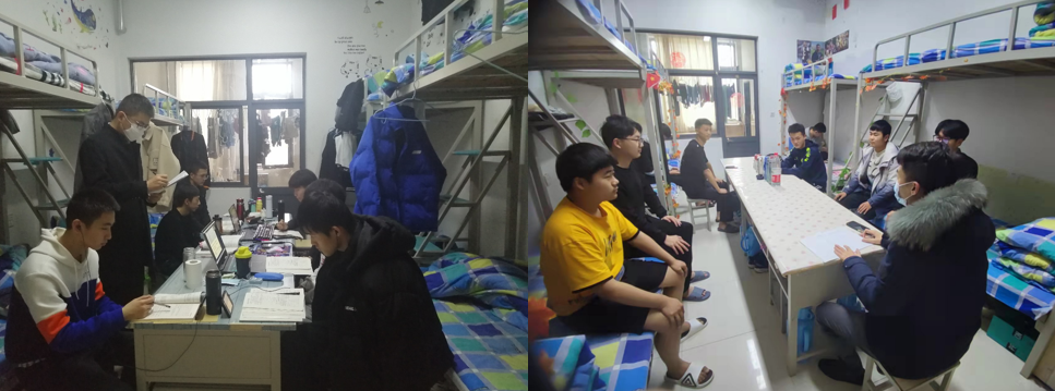 学院根据教师的授课空闲时间以及学生宿舍的分布情况,全体教师主动报名参加教学巡查,学院对巡查工作提出相关要求,明确教学巡查职责:1.查看学生人数;2.管理上课纪律;3.排查安全隐患;4.倾听学生诉求;5.指导宿舍卫生;6.巡查教师上课。