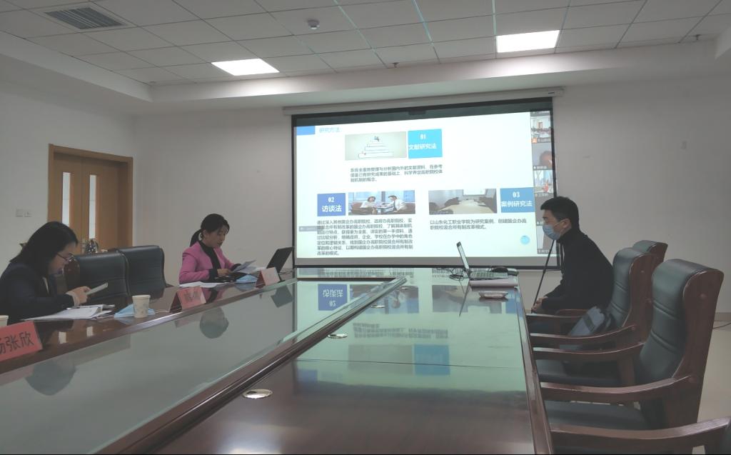 3月24日下午,我校在2207会议室举行山东省2021年职业教育教学改革研究项目开题评审会议,对葛彩霞主持的《校企研共建共享股份制大型智能(仿真)实习实训基地研究-以山东高端化工公共实训基地为例》和杨张欣主持的《新发展阶段国企举办高职院校混合所有制改革研究与实践》进行开题评审。由于疫情原因,5名开题专家组成员采用线上视频方式参会,副校长冯喜成、课题组成员及教务科研处人员到现场参会。会议由副校长冯喜成主持。