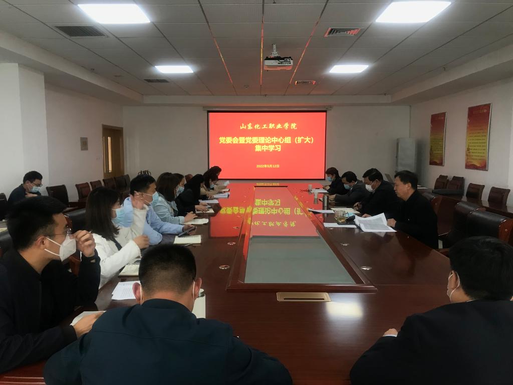 5月12日上午,山东化工职业学院召开党委理论中心组(扩大)学习会议,收听收看学习贯彻习近平总书记在中国人民大学考察时重要讲话精神座谈会,学习《习近平总书记在庆祝中国共产主义青年团成立100周年大会上的讲话》和新职业教育法。学习会议由党委书记孔祥奴同志主持,学校党委委员、党政办公室、党委组织部、宣传统战部负责同志及各党总支(支部)支部书记、副书记参加了会议。