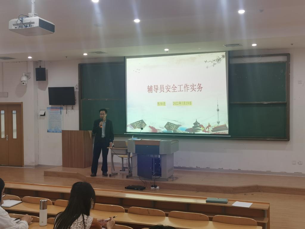 学生工作处副处长陈恒亮为大家进行了辅导员安全工作实务的培训,分别从学生安全管理组织架构、安全教育与培训、突发状况应急处置、极端安全事件四个方面与大家深入探讨交流了学生日常安全管理的方方面面,为学生安全管理工作提供了原则和思路,提出了方法和要求。