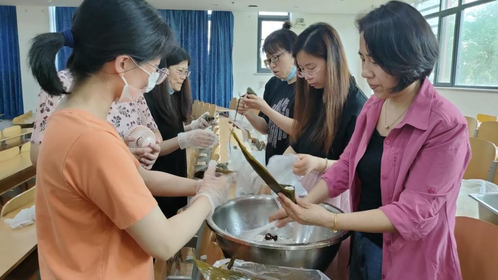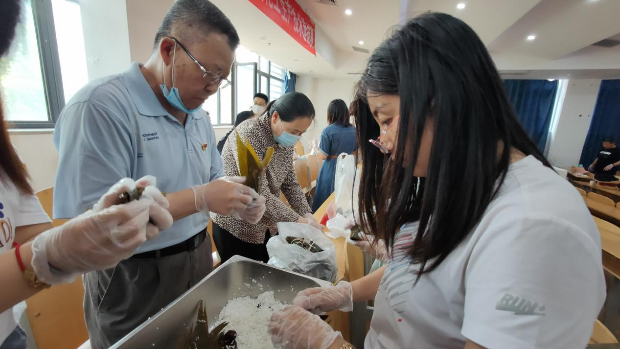 随后,教职工们相互交流经验,切磋技艺,一个个颜色鲜绿、形态各异的粽子陆续展现在大家眼前。在一片欢声笑语中,不知不觉,食材已用尽,教职工们却仍意犹未尽。