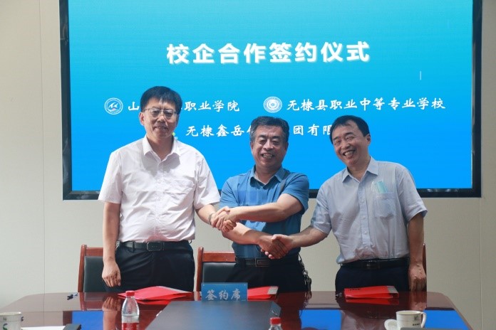 6月23日上午,学校与无棣县职业中等专业学校、鑫岳化工集团有限公司校企合作协议签约在鑫岳化工集团有限公司顺利举行。在两校一企参会人员的见证下,副校长冯喜成与无棣县职业中等专业学校校长冯汝光、鑫岳化工集团有限公司董事、董事会秘书孔令泉共同签署校企合作协议书,并与无棣中专、鑫岳化工负责人深入交流。学校校企合作处副处长王超、教务科研处副处长丁竹青参加了签约仪式。