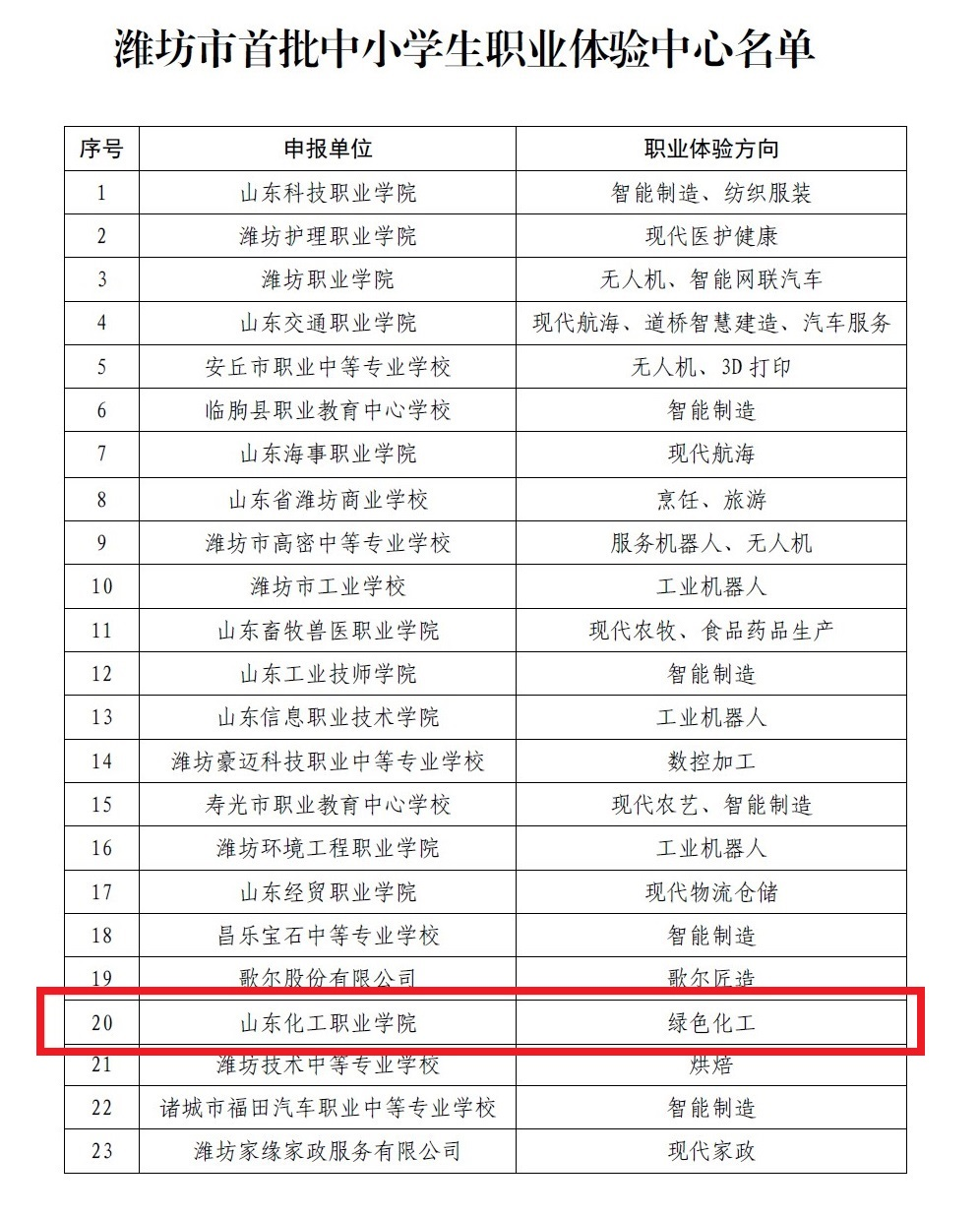 4月19日,潍坊市教育局公布首批中小学生职业体验中心名单,我校绿色化工职业体验中心成功入选。