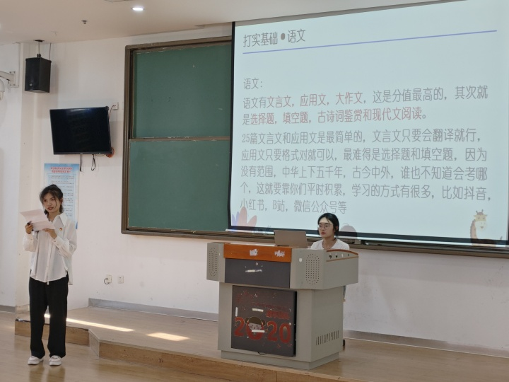马宪晓学长为大家介绍了专升本考试选科、录取分数线变化、近5年招录情况等信息,提醒大家在备考前明确自己的未来规划,避免盲目投入,详细全面介绍了如何选择学校以及备考专业课方面的丰富经验。还结合自己的备考经历,从夯实基础、时间分配、劳逸结合、摆正心态、交流巩固五方面提出了建议。