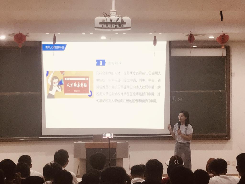 山东化工职业学院是潍坊市“大学生就业创业指导进校园活动”的第一站,苏科长为本次活动致辞,市公共就业和人才服务中心高建红老师对潍坊市最新就业创业政策进行解读,中国高校众创空间联盟创业导师、山东省大学生创新创业指导委员会委员兼竞赛评价委员会委员、高校就业创业及职业生涯规划指导教师隋松老师为学生做专题讲座。