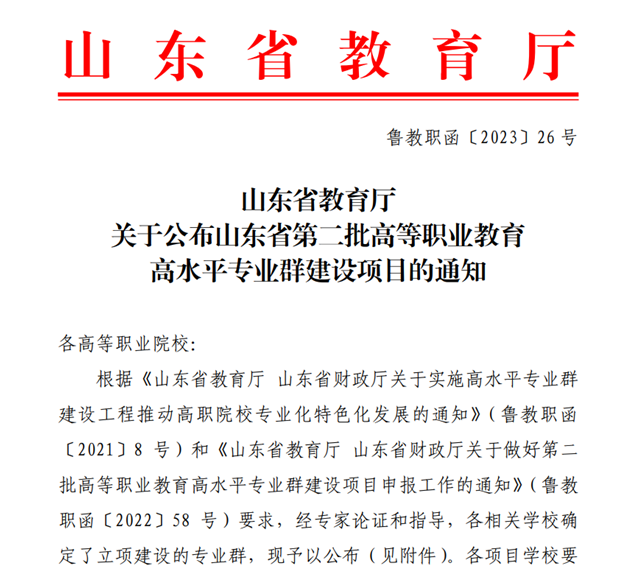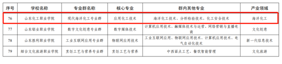 7月11日,山东省教育厅发布了《关于公布山东省第二批高等职业教育高水平专业群建设项目的通知》(鲁教职函〔2023〕26号),我校现代海洋化工专业群成功获批立项,也是此次高水平专业群建设项目名单中唯一一个海洋化工类项目。