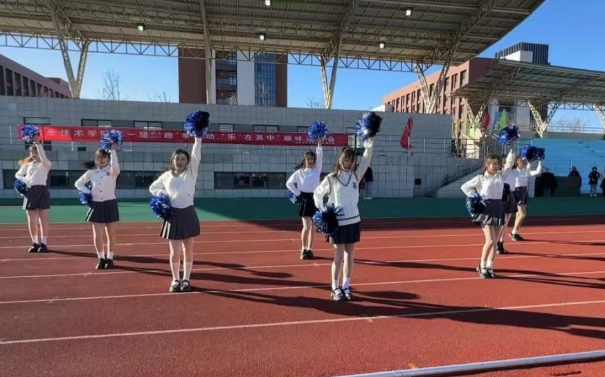 随后,啦啦队手持闪亮的球花,身着靓丽的短裙,在操场上翩翩起舞,为比赛增添了无限的活力和色彩。