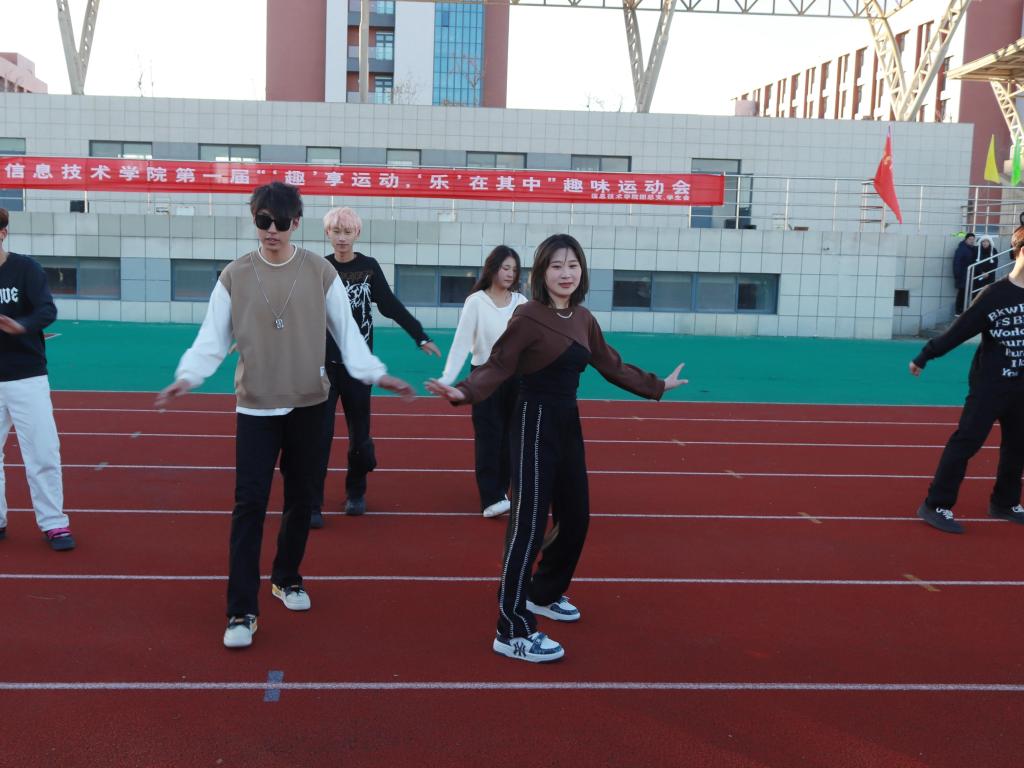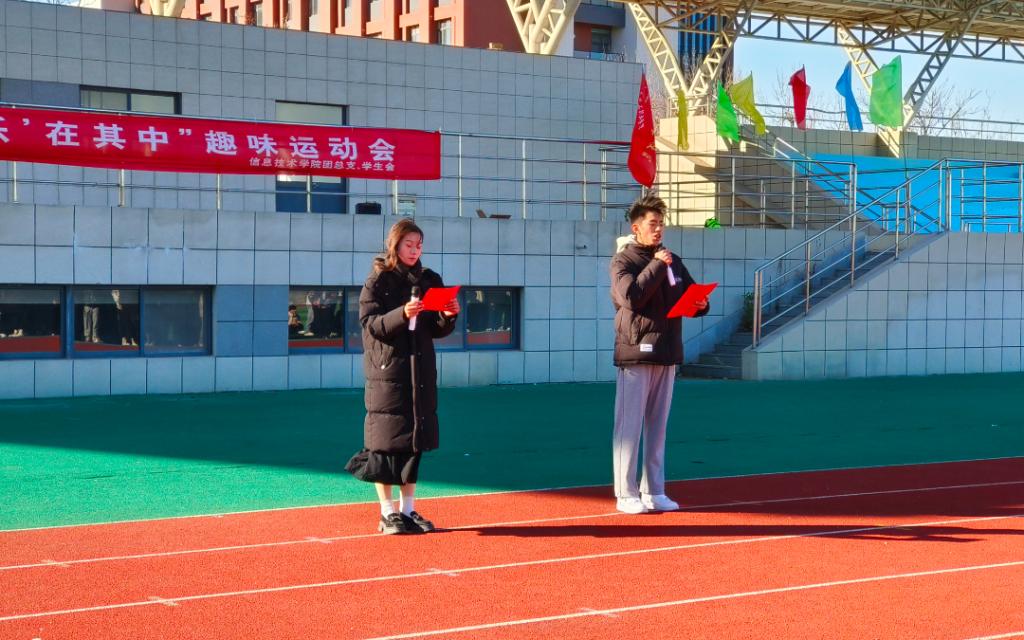 为丰富大学校园文化生活,全面推进阳光体育运动的开展,增强大学生的身体素质和凝聚力,展现师生良好的精神面貌和自强进取的拼搏精神,信息技术学院于11月29日下午,在操场开展了第一届以“‘趣’享运动,‘乐’在其中”为主题的趣味运动会。